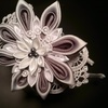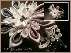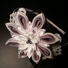Plaukų lankelis iš atlasinio audinio puoštas stiklo perlais ir biserio karoliukais. Spalvą galima pritaikyti Jūsų poreikiams. (PAVYZDYS)